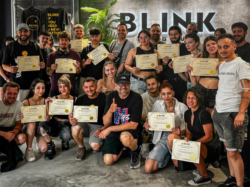 Beyond client work, BLINK is a recognized educational hub. Through BLINK Seminars, Tsintsaris and his team train emerging tattoo, piercing, and PMU (permanent makeup) artists from Greece, the Balkans, and beyond. Group sessions, which are held every two months with 30 participants, combine theory, live demonstration, and hands-on practice. Private training is available year-round, with all participants earning a Certificate of Completion recognized by industry partners in Greece and abroad.