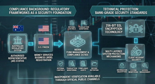 Merin’s fund management framework is supported by multiple layers of regulatory compliance, including Authorised Representative (AR) status under the Australian regulatory framework and registration as a Money Services Business (MSB) with the U.S. Financial Crimes Enforcement Network (FinCEN).