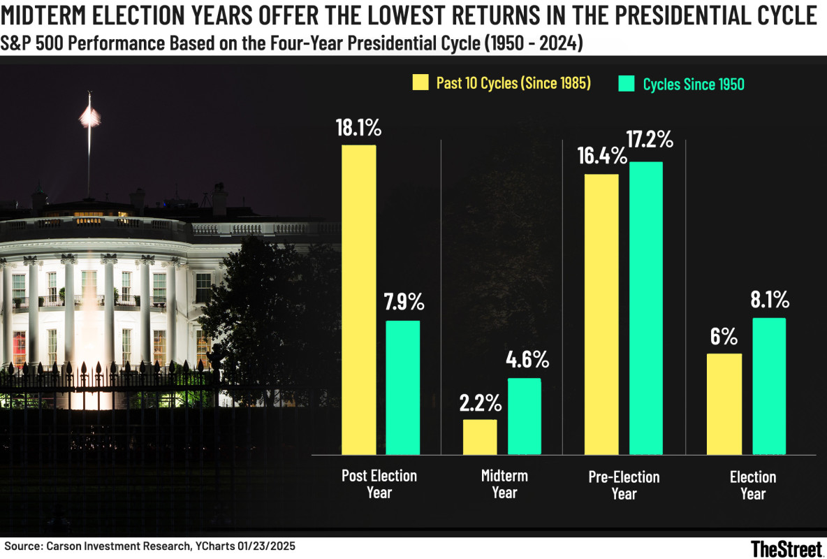 Mid-term years have the worst history of intrayear drawdowns of the four-year Presidential cycle, falling an average of 18%. However, the damage is typically done in the second and third quarters of the year, with stocks finding their footing and rallying when election craziness is over.