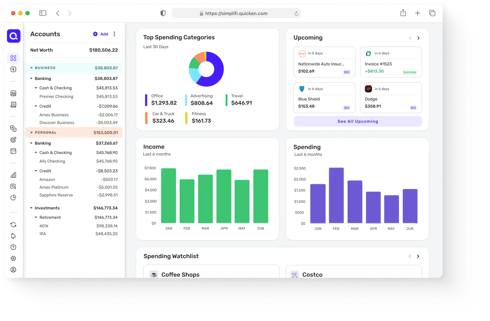 Quicken Business & Personal is a complete business finance app with Quicken Simplifi’s full suite of award-winning personal finance tools built in, at no extra cost: