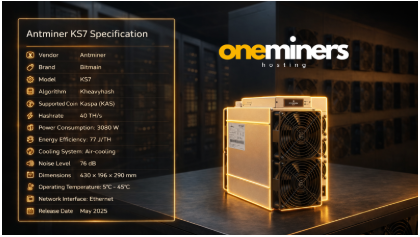 At $1,657 (tax included) through Oneminers hosting, the KS7 dramatically lowers the capital barrier, redefining cost-per-terahash. Miners can now deploy multiple units, diversify data center locations, or scale modular operations with confidence.